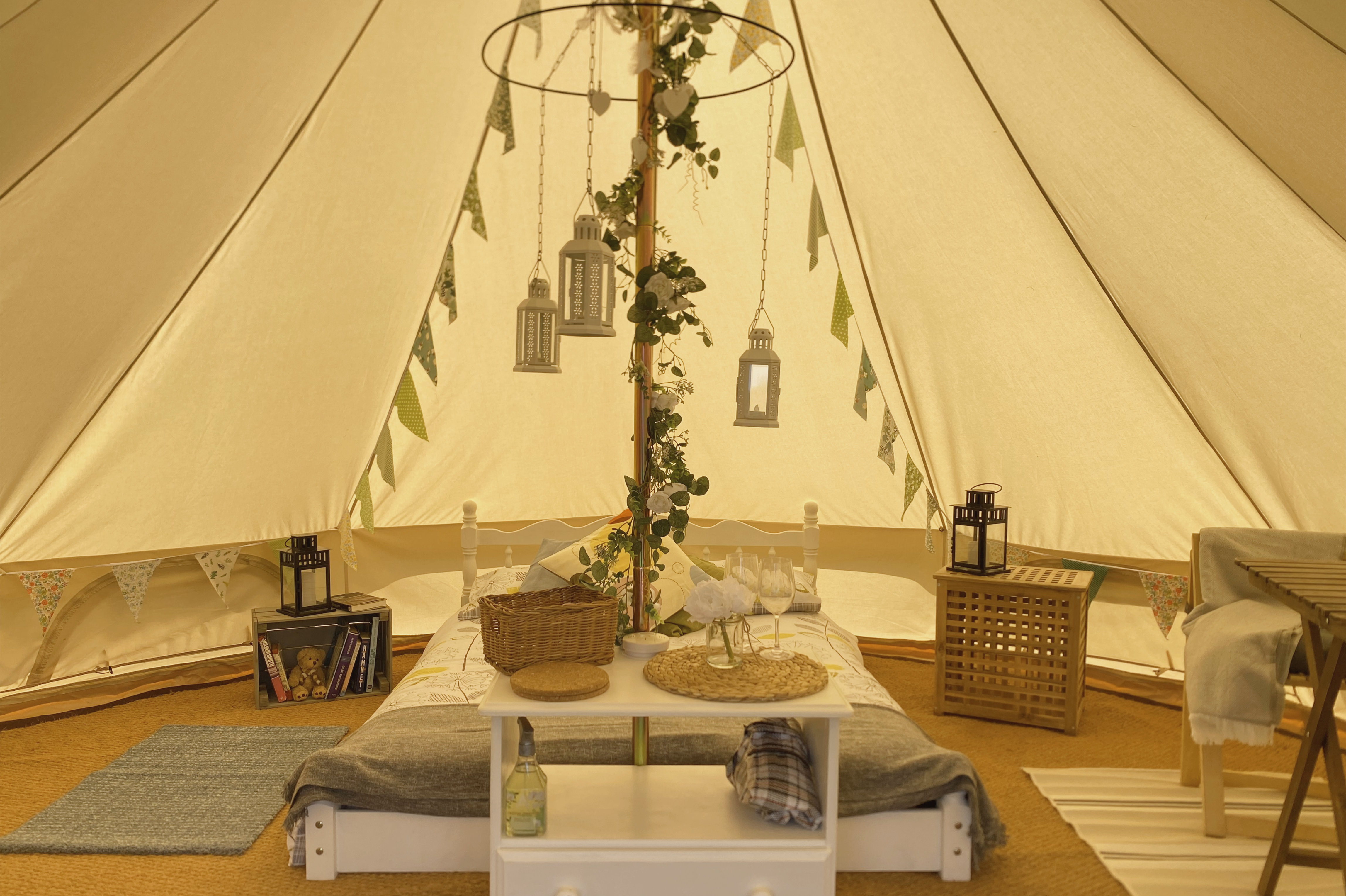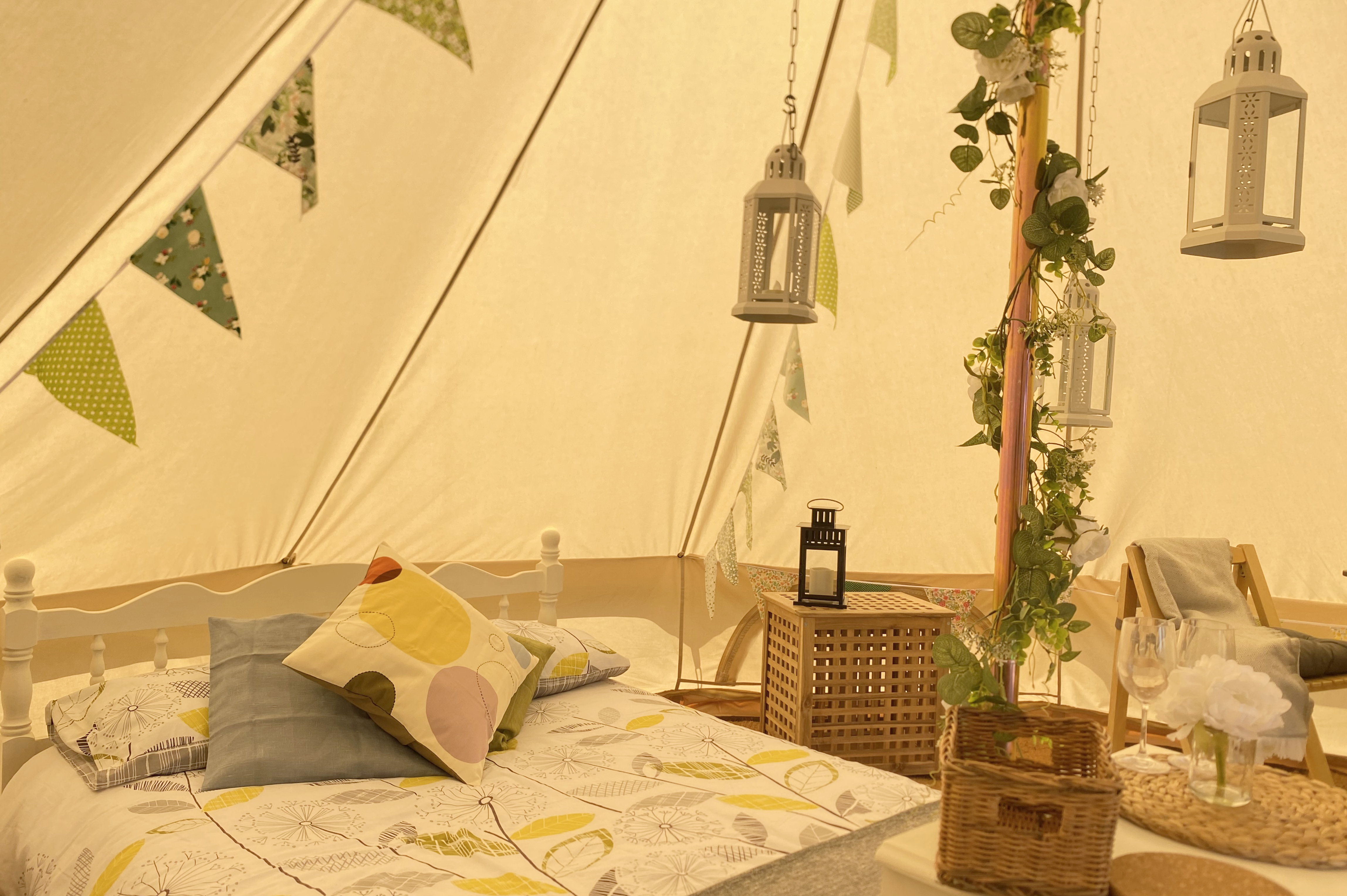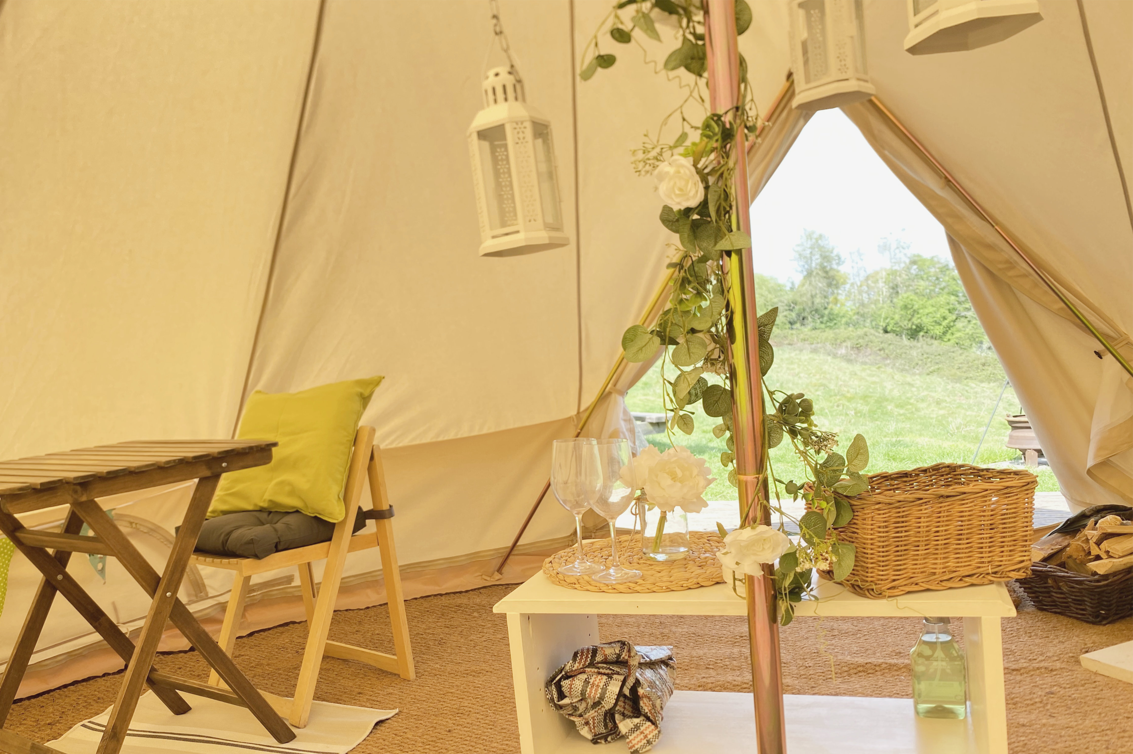 We don't really like the term 'glamping' here at Hidden Valley, as most glamping sites end up looking like static holiday parks with 'glamping units' set out in a grid with very little space inbetween. That's fine if you're into that sort of thing, but what we offer here at Hidden Valley is miles away from this. The bell tent area at Hidden Valley Camping gives each tent its own privacy and plenty of space to sit outside around the campfire and enjoy the stunning views.